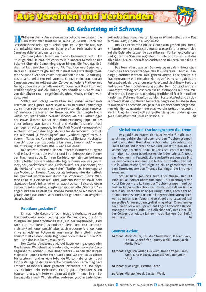 • Pressemitteilung 60. Heimatfest Wilhelmsthal